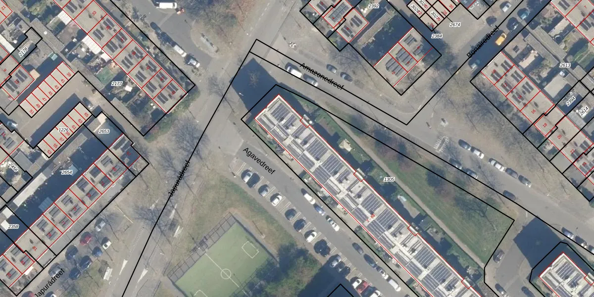 Het perceel waarop Agavedreef 10 staat heeft een oppervlakte van 2990 m². Dit is een zeer groot perceel. De perceeloppervlakte wordt geregistreerd door het Kadaster. Gedetailleerde informatie over de maten van dit perceel kunt u vinden in het rapport Kadastrale kaart met maatvoering van Agavedreef 10.