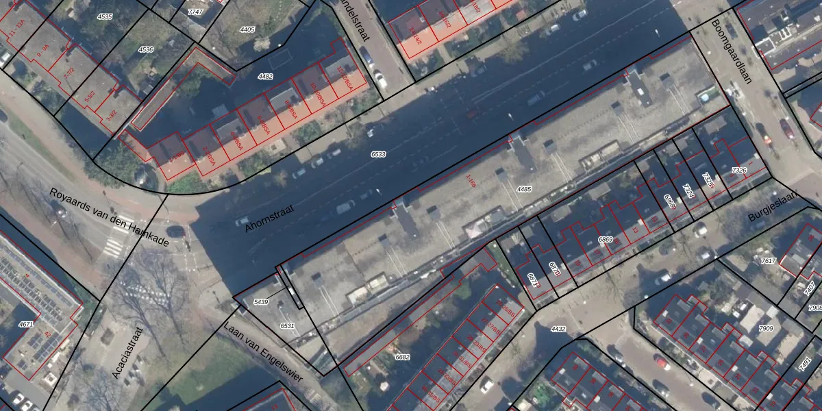Het perceel waarop Ahornstraat 59 staat heeft een oppervlakte van 2545 m². Dit is een zeer groot perceel. De perceeloppervlakte wordt geregistreerd door het Kadaster. Gedetailleerde informatie over de maten van dit perceel kunt u vinden in het rapport Kadastrale kaart met maatvoering van Ahornstraat 59.