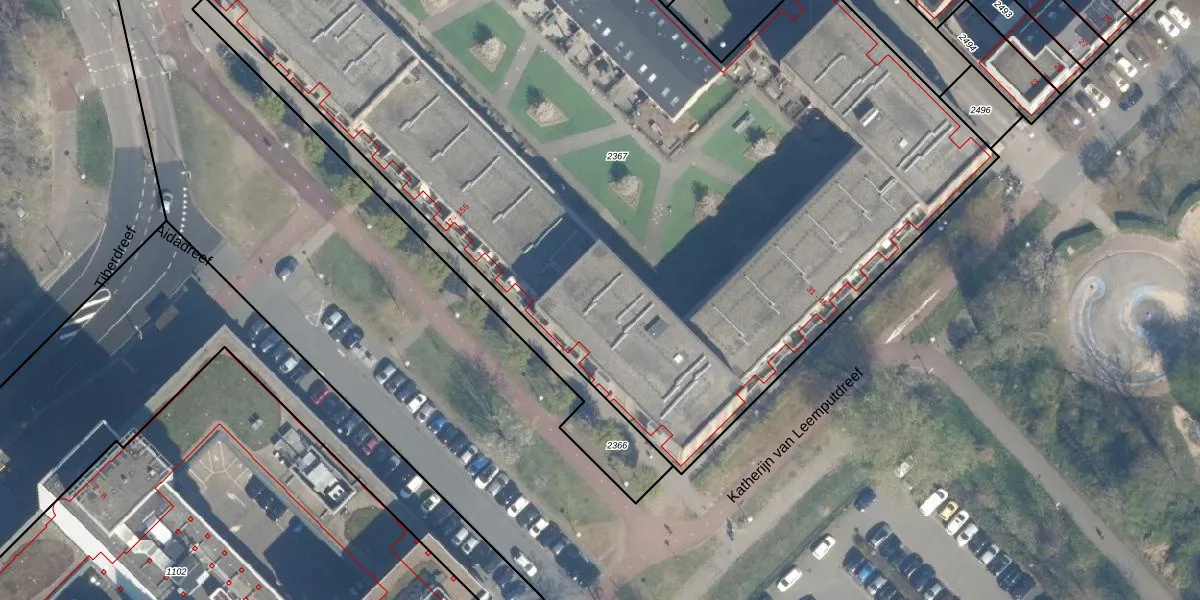 Het perceel waarop Aidadreef 107 staat heeft een oppervlakte van 7008 m². Dit is een zeer groot perceel. De perceeloppervlakte wordt geregistreerd door het Kadaster. Gedetailleerde informatie over de maten van dit perceel kunt u vinden in het rapport Kadastrale kaart met maatvoering van Aidadreef 107.