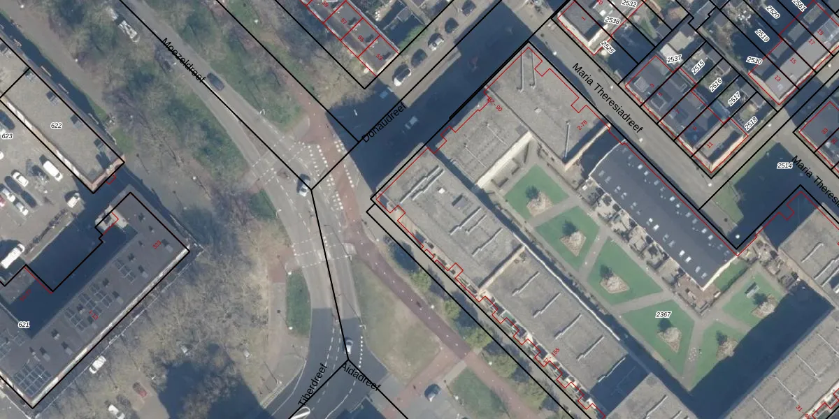 Het perceel waarop Aidadreef 35 staat heeft een oppervlakte van 7008 m². Dit is een zeer groot perceel. De perceeloppervlakte wordt geregistreerd door het Kadaster. Gedetailleerde informatie over de maten van dit perceel kunt u vinden in het rapport Kadastrale kaart met maatvoering van Aidadreef 35.