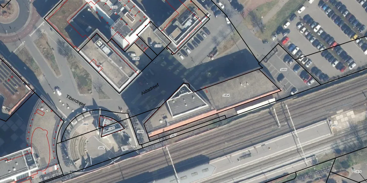 Het perceel waarop Aidadreef 4 staat heeft een oppervlakte van 1110 m². Dit is een zeer groot perceel. De perceeloppervlakte wordt geregistreerd door het Kadaster. Gedetailleerde informatie over de maten van dit perceel kunt u vinden in het rapport Kadastrale kaart met maatvoering van Aidadreef 4.