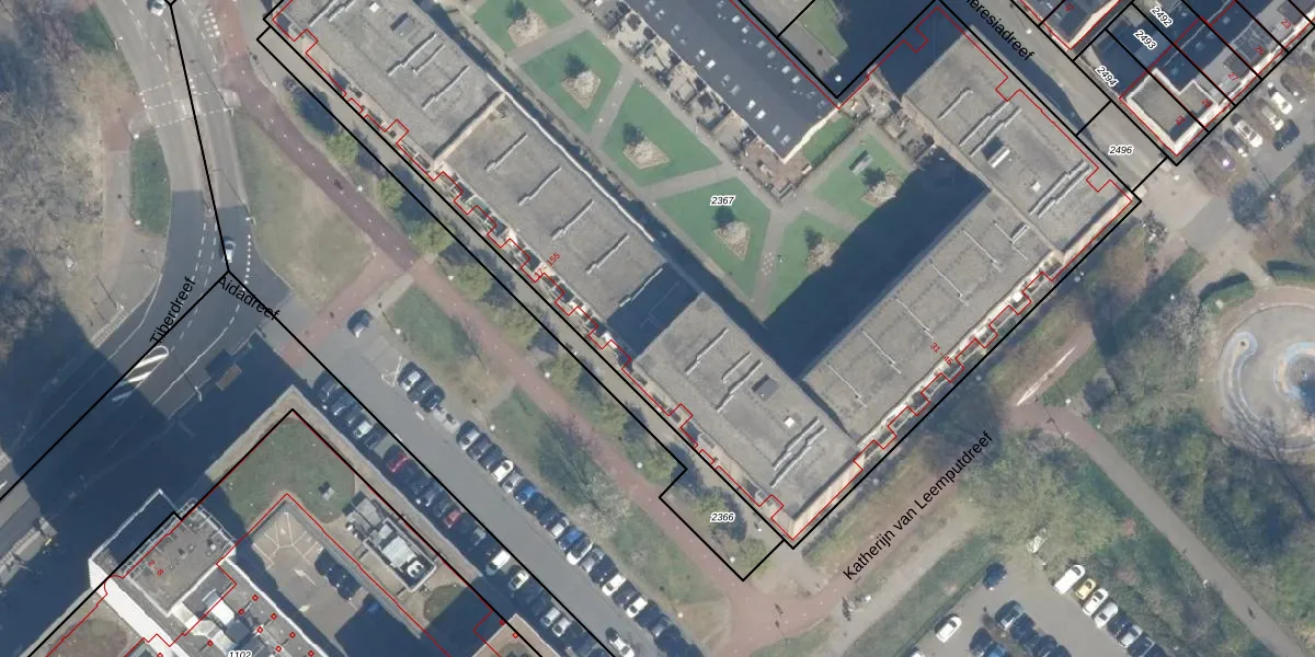 Het perceel waarop Aidadreef 89 staat heeft een oppervlakte van 7008 m². Dit is een zeer groot perceel. De perceeloppervlakte wordt geregistreerd door het Kadaster. Gedetailleerde informatie over de maten van dit perceel kunt u vinden in het rapport Kadastrale kaart met maatvoering van Aidadreef 89.