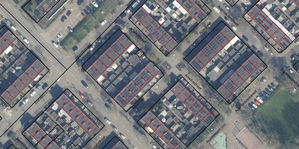 Het perceel waarop Ajaxdreef 10 staat heeft een oppervlakte van 1530 m². Dit is een zeer groot perceel. De perceeloppervlakte wordt geregistreerd door het Kadaster. Gedetailleerde informatie over de maten van dit perceel kunt u vinden in het rapport Kadastrale kaart met maatvoering van Ajaxdreef 10.
