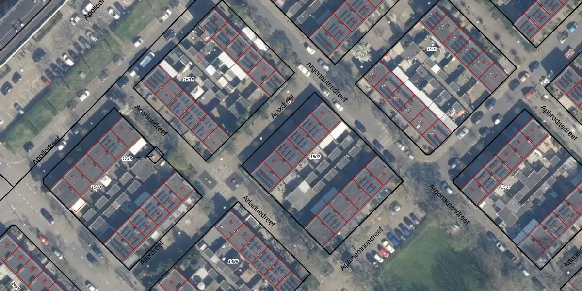 Het perceel waarop Ajaxdreef 5 staat heeft een oppervlakte van 1540 m². Dit is een zeer groot perceel. De perceeloppervlakte wordt geregistreerd door het Kadaster. Gedetailleerde informatie over de maten van dit perceel kunt u vinden in het rapport Kadastrale kaart met maatvoering van Ajaxdreef 5.