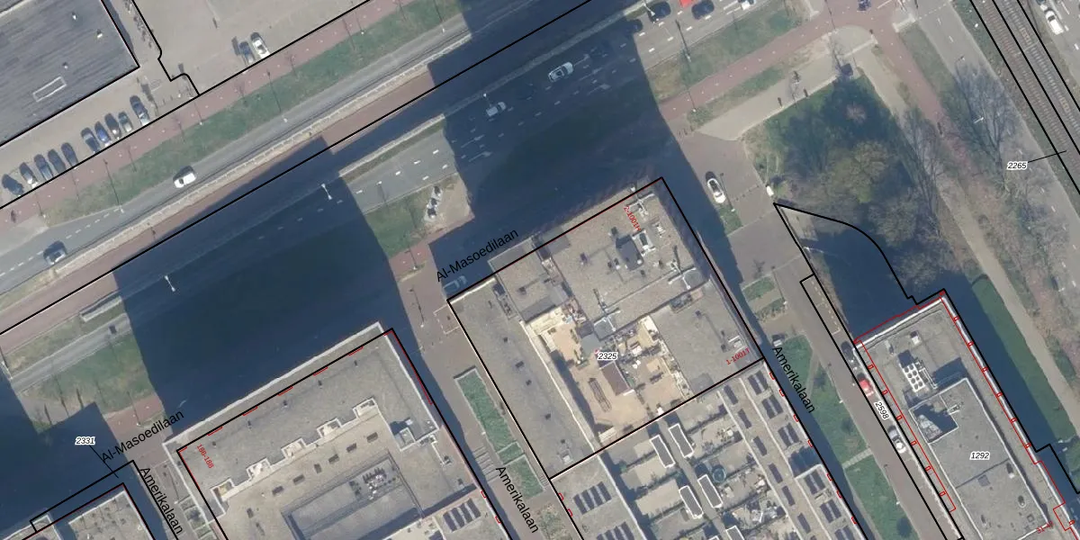 Het perceel waarop Al-Masoedilaan 32 staat heeft een oppervlakte van 1749 m². Dit is een zeer groot perceel. De perceeloppervlakte wordt geregistreerd door het Kadaster. Gedetailleerde informatie over de maten van dit perceel kunt u vinden in het rapport Kadastrale kaart met maatvoering van Al-Masoedilaan 32.