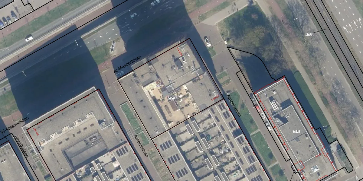 Het perceel waarop Al-Masoedilaan 36 staat heeft een oppervlakte van 1749 m². Dit is een zeer groot perceel. De perceeloppervlakte wordt geregistreerd door het Kadaster. Gedetailleerde informatie over de maten van dit perceel kunt u vinden in het rapport Kadastrale kaart met maatvoering van Al-Masoedilaan 36.