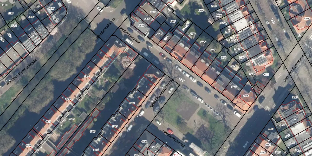 Het perceel waarop Albert Neuhuysstraat 1-2 staat heeft een oppervlakte van 1550 m². Dit is een zeer groot perceel. De perceeloppervlakte wordt geregistreerd door het Kadaster. Gedetailleerde informatie over de maten van dit perceel kunt u vinden in het rapport Kadastrale kaart met maatvoering van Albert Neuhuysstraat 1-2.