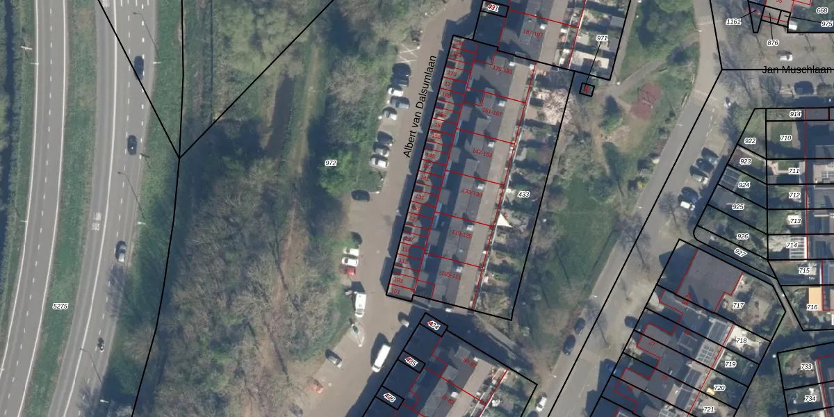 Het perceel waarop Albert van Dalsumlaan 129 staat heeft een oppervlakte van 1915 m². Dit is een zeer groot perceel. De perceeloppervlakte wordt geregistreerd door het Kadaster. Gedetailleerde informatie over de maten van dit perceel kunt u vinden in het rapport Kadastrale kaart met maatvoering van Albert van Dalsumlaan 129.