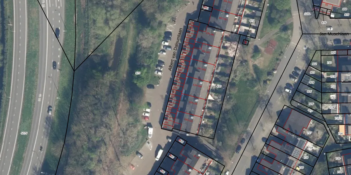 Het perceel waarop Albert van Dalsumlaan 131 staat heeft een oppervlakte van 1915 m². Dit is een zeer groot perceel. De perceeloppervlakte wordt geregistreerd door het Kadaster. Gedetailleerde informatie over de maten van dit perceel kunt u vinden in het rapport Kadastrale kaart met maatvoering van Albert van Dalsumlaan 131.