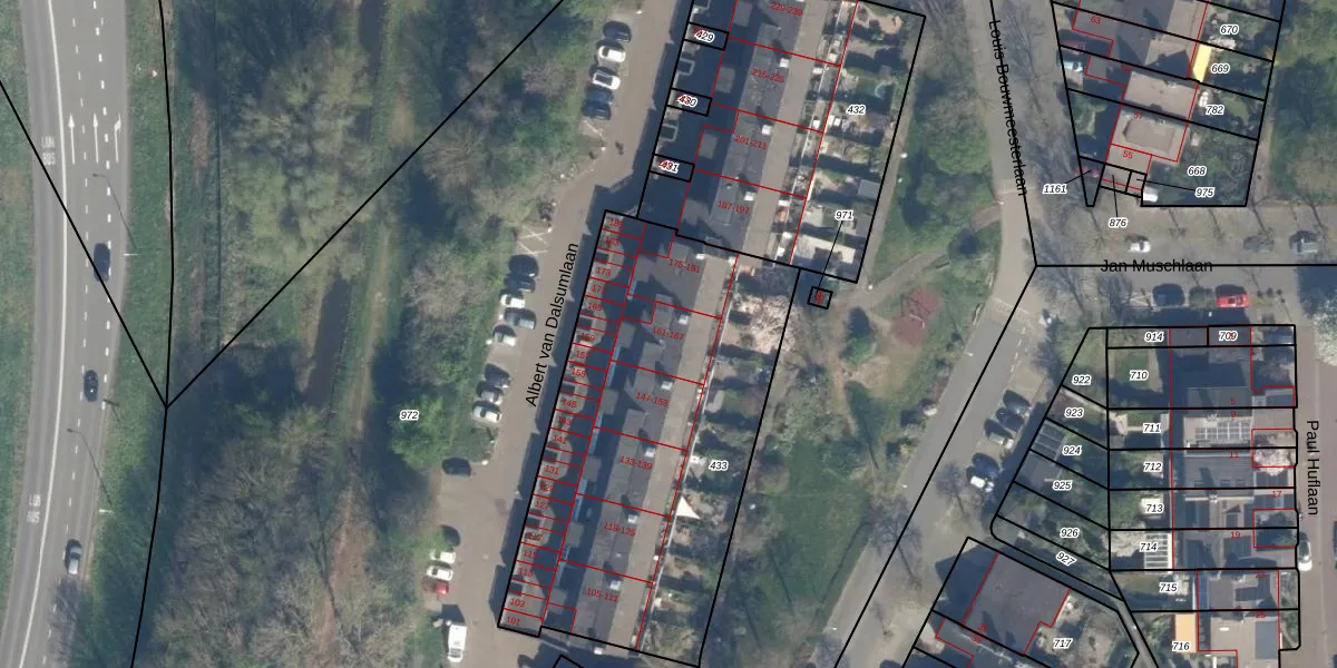 Het perceel waarop Albert van Dalsumlaan 165 staat heeft een oppervlakte van 1915 m². Dit is een zeer groot perceel. De perceeloppervlakte wordt geregistreerd door het Kadaster. Gedetailleerde informatie over de maten van dit perceel kunt u vinden in het rapport Kadastrale kaart met maatvoering van Albert van Dalsumlaan 165.