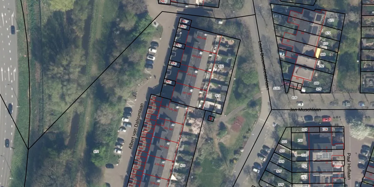 Het perceel waarop Albert van Dalsumlaan 191 staat heeft een oppervlakte van 1345 m². Dit is een zeer groot perceel. De perceeloppervlakte wordt geregistreerd door het Kadaster. Gedetailleerde informatie over de maten van dit perceel kunt u vinden in het rapport Kadastrale kaart met maatvoering van Albert van Dalsumlaan 191.