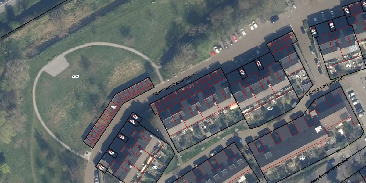 Het perceel waarop Albert van Dalsumlaan 403 staat heeft een oppervlakte van 1280 m². Dit is een zeer groot perceel. De perceeloppervlakte wordt geregistreerd door het Kadaster. Gedetailleerde informatie over de maten van dit perceel kunt u vinden in het rapport Kadastrale kaart met maatvoering van Albert van Dalsumlaan 403.