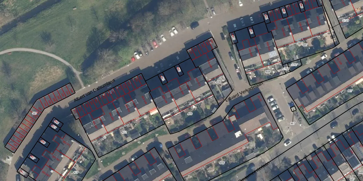 Het perceel waarop Albert van Dalsumlaan 455 staat heeft een oppervlakte van 960 m². Dit is een groot perceel. De perceeloppervlakte wordt geregistreerd door het Kadaster. Gedetailleerde informatie over de maten van dit perceel kunt u vinden in het rapport Kadastrale kaart met maatvoering van Albert van Dalsumlaan 455.