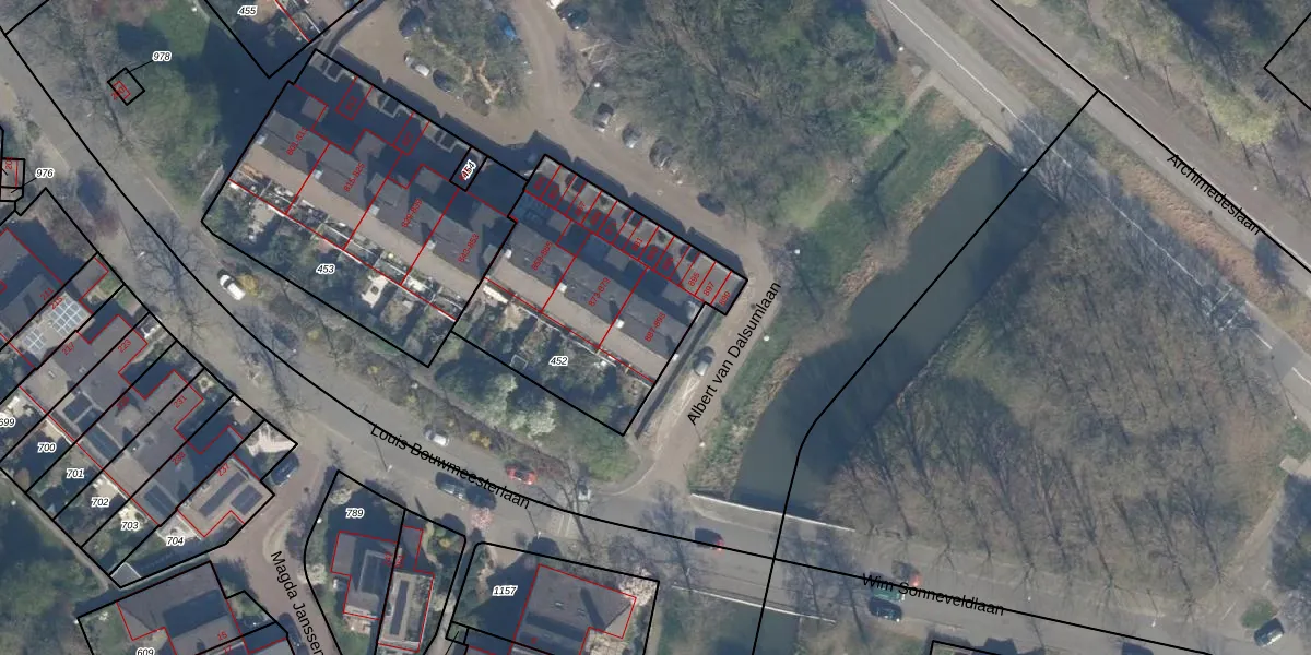 Het perceel waarop Albert van Dalsumlaan 891 staat heeft een oppervlakte van 995 m². Dit is een groot perceel. De perceeloppervlakte wordt geregistreerd door het Kadaster. Gedetailleerde informatie over de maten van dit perceel kunt u vinden in het rapport Kadastrale kaart met maatvoering van Albert van Dalsumlaan 891.
