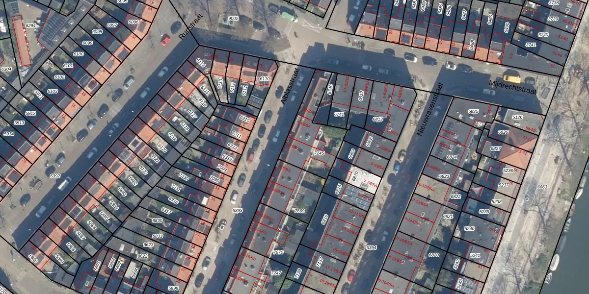 Alblasstraat 6-BS is gelegen op kadastraal perceel CTR00D7245. Deze kadastrale aanduiding is uniek en wordt gebruikt door het Kadaster om eigendomsrechten en andere zakelijke rechten vast te leggen. Het perceel maakt onderdeel uit van de kadastrale gemeente Catharijne.