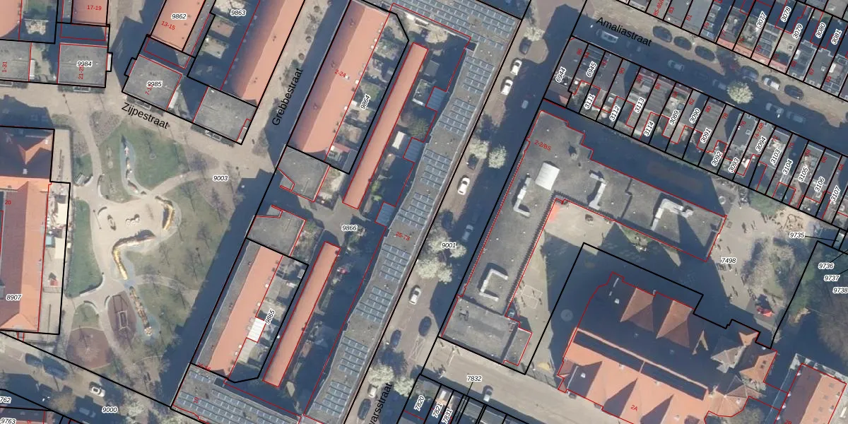 Het perceel waarop Amaliadwarsstraat 47 staat heeft een oppervlakte van 3385 m². Dit is een zeer groot perceel. De perceeloppervlakte wordt geregistreerd door het Kadaster. Gedetailleerde informatie over de maten van dit perceel kunt u vinden in het rapport Kadastrale kaart met maatvoering van Amaliadwarsstraat 47.