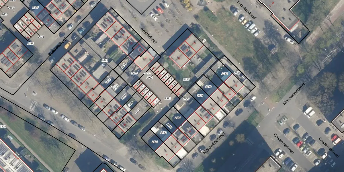 Gebruik de zoekbalk of klik op een perceel voor informatie over de adressen binnen dit perceel.