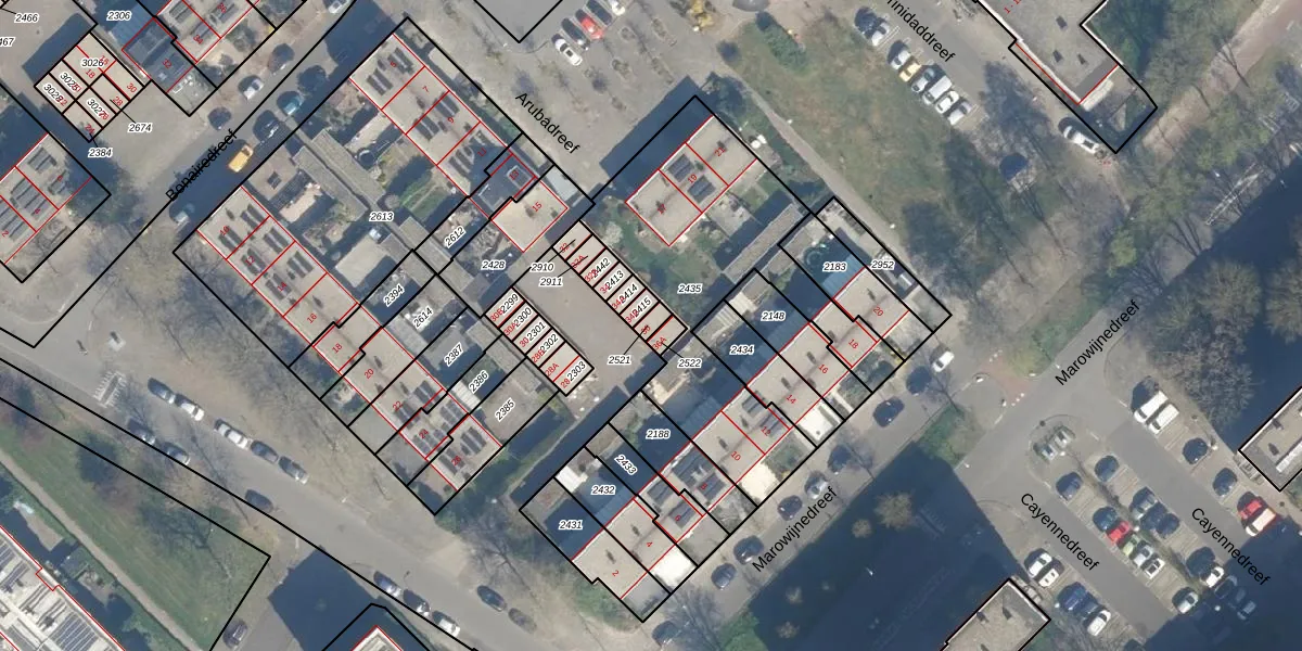 Gebruik de zoekbalk of klik op een perceel voor informatie over de adressen binnen dit perceel.