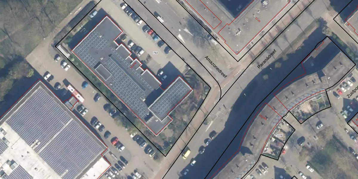 Het perceel waarop Amazonedreef 47 staat heeft een oppervlakte van 3739 m². Dit is een zeer groot perceel. De perceeloppervlakte wordt geregistreerd door het Kadaster. Gedetailleerde informatie over de maten van dit perceel kunt u vinden in het rapport Kadastrale kaart met maatvoering van Amazonedreef 47.