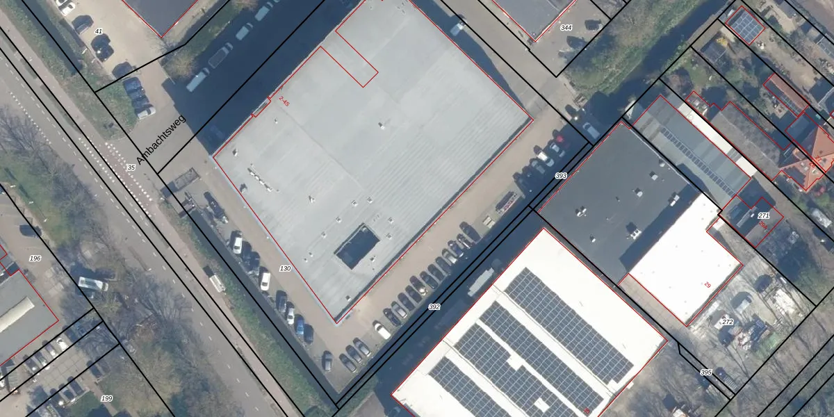 Het perceel waarop Ambachtsweg 4-M staat heeft een oppervlakte van 5645 m². Dit is een zeer groot perceel. De perceeloppervlakte wordt geregistreerd door het Kadaster. Gedetailleerde informatie over de maten van dit perceel kunt u vinden in het rapport Kadastrale kaart met maatvoering van Ambachtsweg 4-M.