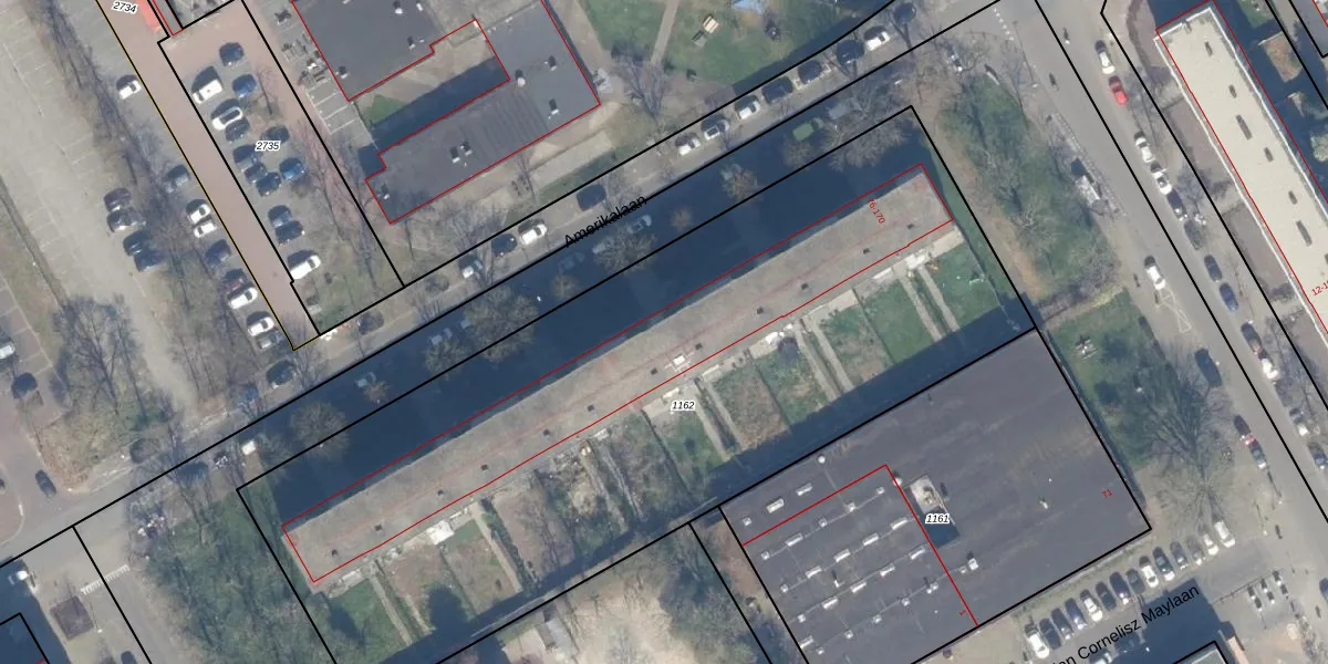 Het perceel waarop Amerikalaan 118 staat heeft een oppervlakte van 4435 m². Dit is een zeer groot perceel. De perceeloppervlakte wordt geregistreerd door het Kadaster. Gedetailleerde informatie over de maten van dit perceel kunt u vinden in het rapport Kadastrale kaart met maatvoering van Amerikalaan 118.