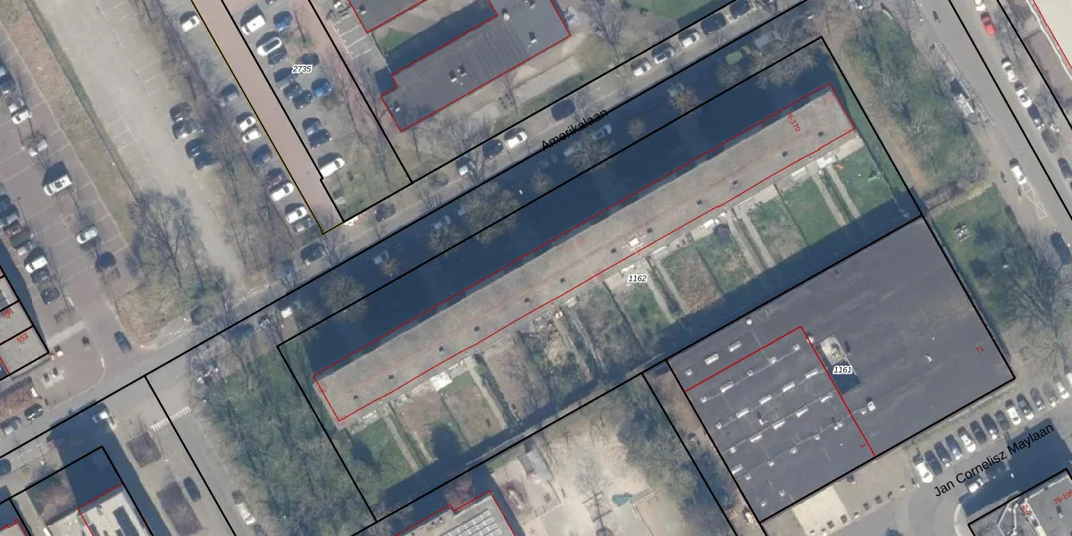 Het perceel waarop Amerikalaan 134 staat heeft een oppervlakte van 4435 m². Dit is een zeer groot perceel. De perceeloppervlakte wordt geregistreerd door het Kadaster. Gedetailleerde informatie over de maten van dit perceel kunt u vinden in het rapport Kadastrale kaart met maatvoering van Amerikalaan 134.