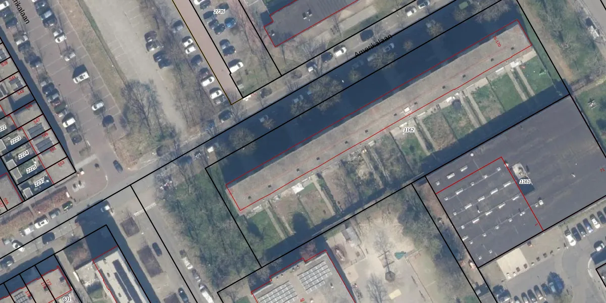 Het perceel waarop Amerikalaan 154 staat heeft een oppervlakte van 4435 m². Dit is een zeer groot perceel. De perceeloppervlakte wordt geregistreerd door het Kadaster. Gedetailleerde informatie over de maten van dit perceel kunt u vinden in het rapport Kadastrale kaart met maatvoering van Amerikalaan 154.