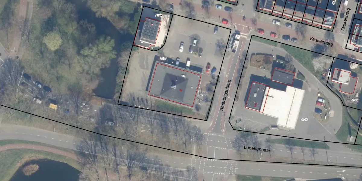 Het perceel waarop Amerongseberg 89 staat heeft een oppervlakte van 2315 m². Dit is een zeer groot perceel. De perceeloppervlakte wordt geregistreerd door het Kadaster. Gedetailleerde informatie over de maten van dit perceel kunt u vinden in het rapport Kadastrale kaart met maatvoering van Amerongseberg 89.