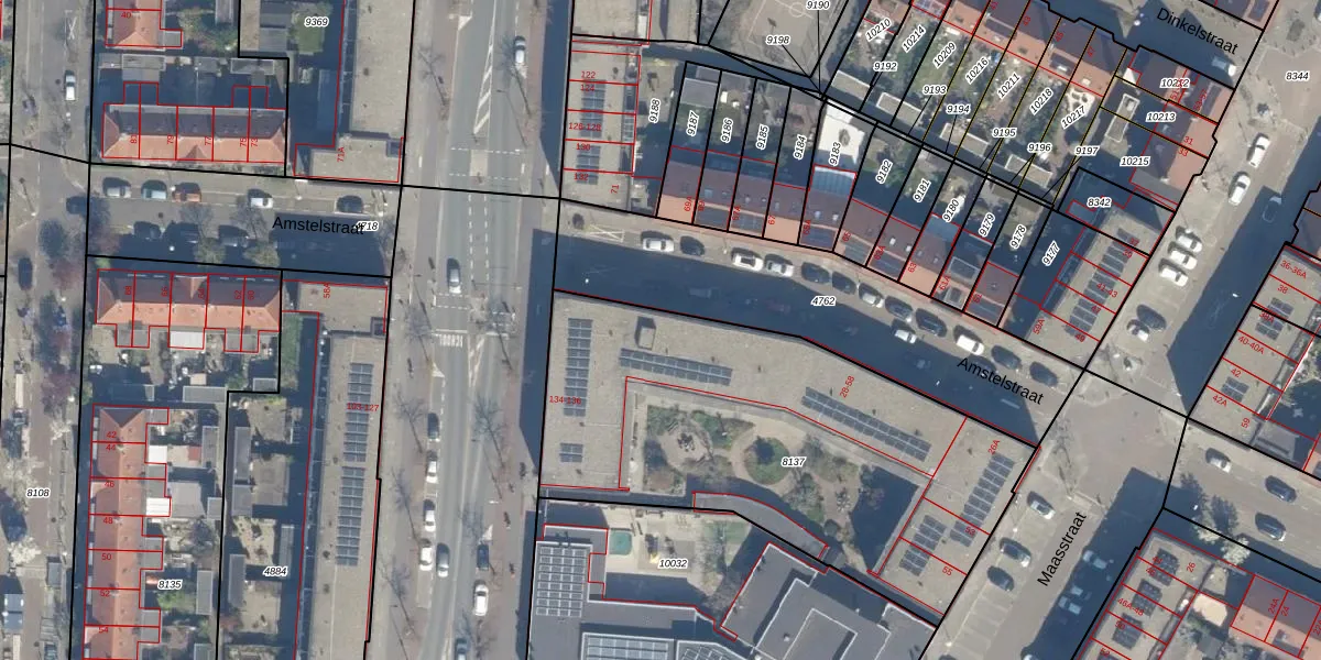 Het perceel waarop Amstelstraat 46-A staat heeft een oppervlakte van 2125 m². Dit is een zeer groot perceel. De perceeloppervlakte wordt geregistreerd door het Kadaster. Gedetailleerde informatie over de maten van dit perceel kunt u vinden in het rapport Kadastrale kaart met maatvoering van Amstelstraat 46-A.