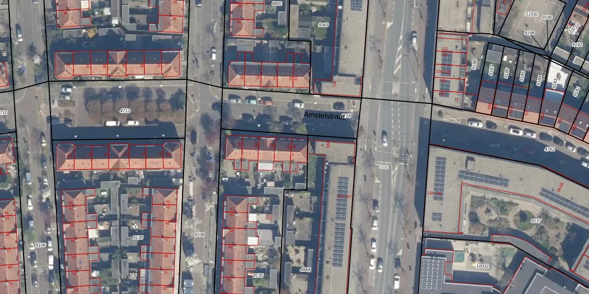 Het perceel waarop Amstelstraat 60 staat heeft een oppervlakte van 2183 m². Dit is een zeer groot perceel. De perceeloppervlakte wordt geregistreerd door het Kadaster. Gedetailleerde informatie over de maten van dit perceel kunt u vinden in het rapport Kadastrale kaart met maatvoering van Amstelstraat 60.