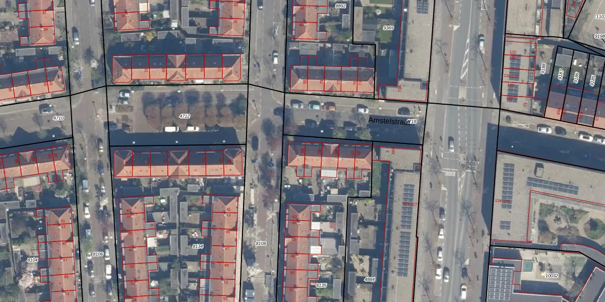 Het perceel waarop Amstelstraat 68 staat heeft een oppervlakte van 2183 m². Dit is een zeer groot perceel. De perceeloppervlakte wordt geregistreerd door het Kadaster. Gedetailleerde informatie over de maten van dit perceel kunt u vinden in het rapport Kadastrale kaart met maatvoering van Amstelstraat 68.