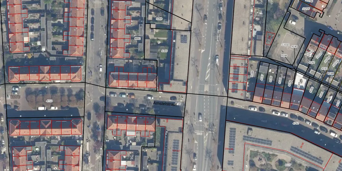 Het perceel waarop Amstelstraat 71-A staat heeft een oppervlakte van 838 m². Dit is een groot perceel. De perceeloppervlakte wordt geregistreerd door het Kadaster. Gedetailleerde informatie over de maten van dit perceel kunt u vinden in het rapport Kadastrale kaart met maatvoering van Amstelstraat 71-A.