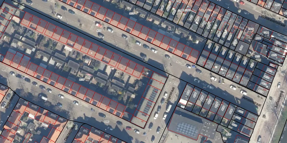 Het perceel waarop Amstelstraat 8-A staat heeft een oppervlakte van 5381 m². Dit is een zeer groot perceel. De perceeloppervlakte wordt geregistreerd door het Kadaster. Gedetailleerde informatie over de maten van dit perceel kunt u vinden in het rapport Kadastrale kaart met maatvoering van Amstelstraat 8-A.