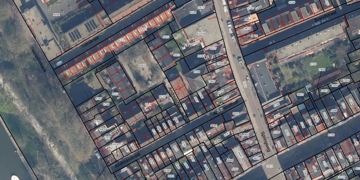 Andreashof 15 is gelegen op kadastraal perceel UTT00C8108. Deze kadastrale aanduiding is uniek en wordt gebruikt door het Kadaster om eigendomsrechten en andere zakelijke rechten vast te leggen. Het perceel maakt onderdeel uit van de kadastrale gemeente Utrecht.
