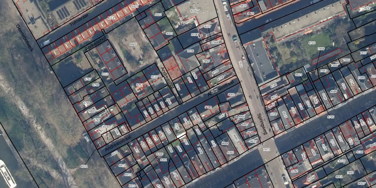 Andreasstraat 19 is gelegen op kadastraal perceel UTT00C9298. Deze kadastrale aanduiding is uniek en wordt gebruikt door het Kadaster om eigendomsrechten en andere zakelijke rechten vast te leggen. Het perceel maakt onderdeel uit van de kadastrale gemeente Utrecht.
