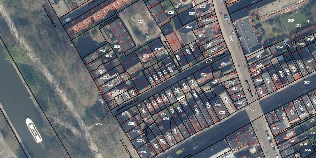 Andreasstraat 27 is gelegen op kadastraal perceel UTT00C8882. Deze kadastrale aanduiding is uniek en wordt gebruikt door het Kadaster om eigendomsrechten en andere zakelijke rechten vast te leggen. Het perceel maakt onderdeel uit van de kadastrale gemeente Utrecht.
