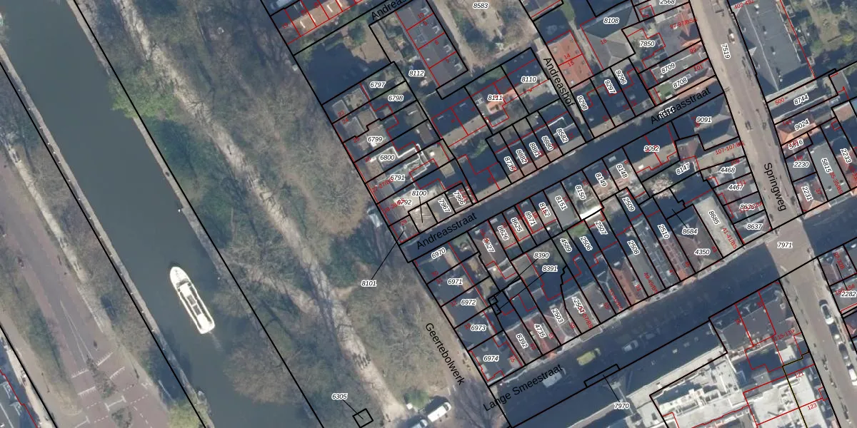 Andreasstraat 41 is gelegen op kadastraal perceel UTT00C8100. Deze kadastrale aanduiding is uniek en wordt gebruikt door het Kadaster om eigendomsrechten en andere zakelijke rechten vast te leggen. Het perceel maakt onderdeel uit van de kadastrale gemeente Utrecht.