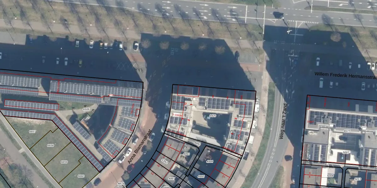 Het perceel waarop Anna Blamanstraat 2-33 staat heeft een oppervlakte van 1307 m². Dit is een zeer groot perceel. De perceeloppervlakte wordt geregistreerd door het Kadaster. Gedetailleerde informatie over de maten van dit perceel kunt u vinden in het rapport Kadastrale kaart met maatvoering van Anna Blamanstraat 2-33.