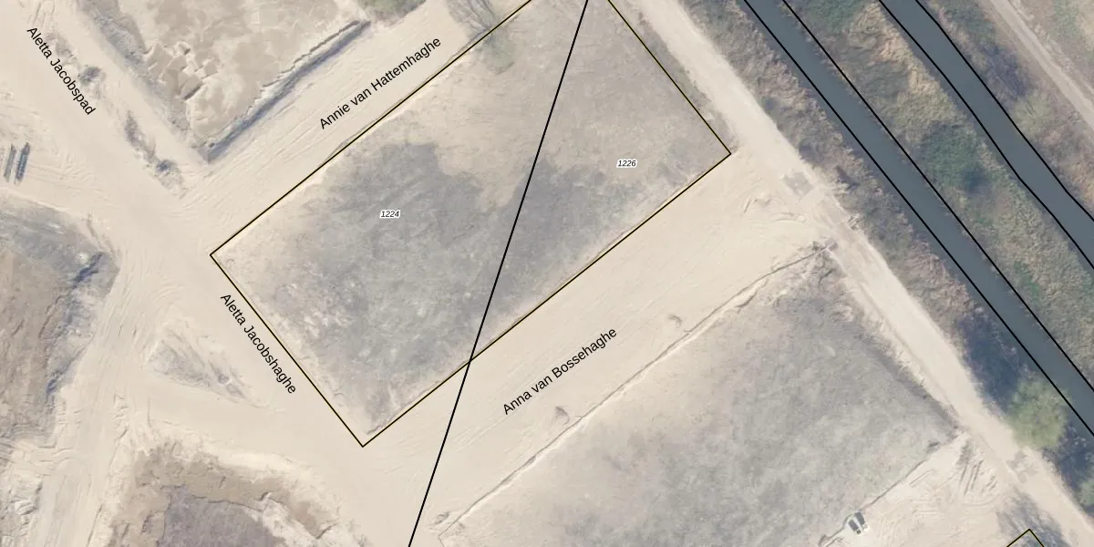 Het perceel waarop Anna van Bossehaghe 9 staat heeft een oppervlakte van 1224 m². Dit is een zeer groot perceel. De perceeloppervlakte wordt geregistreerd door het Kadaster. Gedetailleerde informatie over de maten van dit perceel kunt u vinden in het rapport Kadastrale kaart met maatvoering van Anna van Bossehaghe 9.