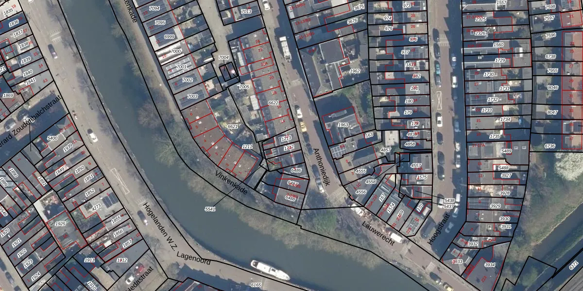 Gebruik de zoekbalk of klik op een perceel voor informatie over de adressen binnen dit perceel.