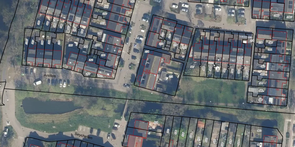 Het perceel waarop Antillen 21 staat heeft een oppervlakte van 724 m². Dit is een groot perceel. De perceeloppervlakte wordt geregistreerd door het Kadaster. Gedetailleerde informatie over de maten van dit perceel kunt u vinden in het rapport Kadastrale kaart met maatvoering van Antillen 21.