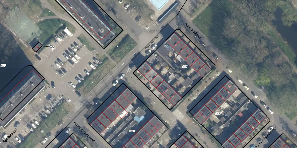 Aphroditedreef 21 is gelegen op kadastraal perceel UTT00H1505. Deze kadastrale aanduiding is uniek en wordt gebruikt door het Kadaster om eigendomsrechten en andere zakelijke rechten vast te leggen. Het perceel maakt onderdeel uit van de kadastrale gemeente Utrecht.