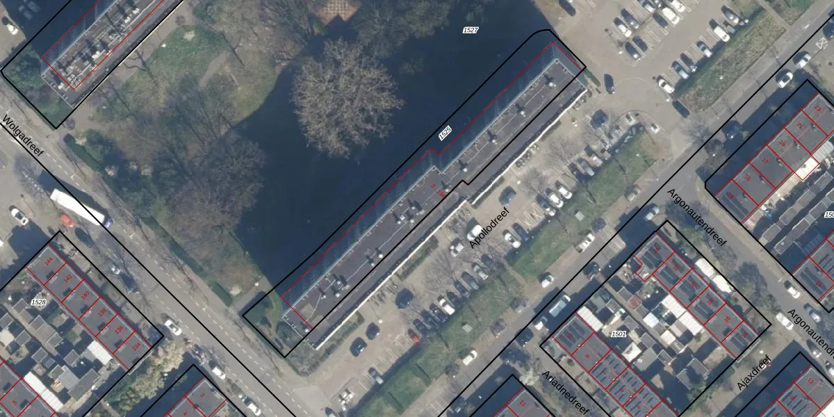 Het perceel waarop Apollodreef 102 staat heeft een oppervlakte van 1359 m². Dit is een zeer groot perceel. De perceeloppervlakte wordt geregistreerd door het Kadaster. Gedetailleerde informatie over de maten van dit perceel kunt u vinden in het rapport Kadastrale kaart met maatvoering van Apollodreef 102.
