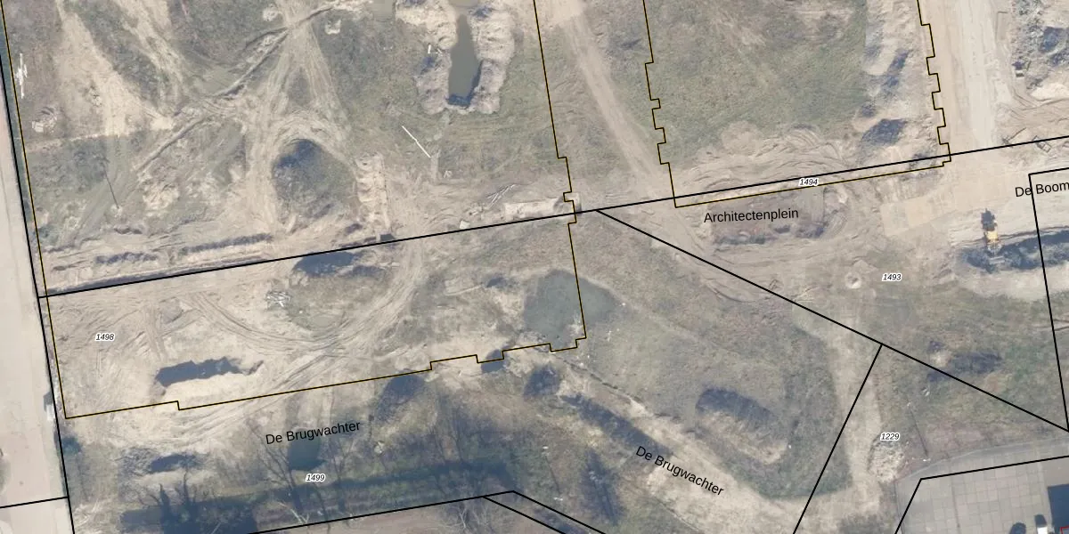 Het perceel waarop Architectenplein 104 staat heeft een oppervlakte van 2392 m². Dit is een zeer groot perceel. De perceeloppervlakte wordt geregistreerd door het Kadaster. Gedetailleerde informatie over de maten van dit perceel kunt u vinden in het rapport Kadastrale kaart met maatvoering van Architectenplein 104.