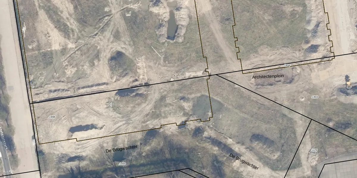 Het perceel waarop Architectenplein 151 staat heeft een oppervlakte van 2392 m². Dit is een zeer groot perceel. De perceeloppervlakte wordt geregistreerd door het Kadaster. Gedetailleerde informatie over de maten van dit perceel kunt u vinden in het rapport Kadastrale kaart met maatvoering van Architectenplein 151.