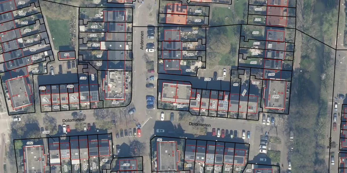 Het perceel waarop Ardennen 60 staat heeft een oppervlakte van 342 m². Dit is een groot perceel. De perceeloppervlakte wordt geregistreerd door het Kadaster. Gedetailleerde informatie over de maten van dit perceel kunt u vinden in het rapport Kadastrale kaart met maatvoering van Ardennen 60.