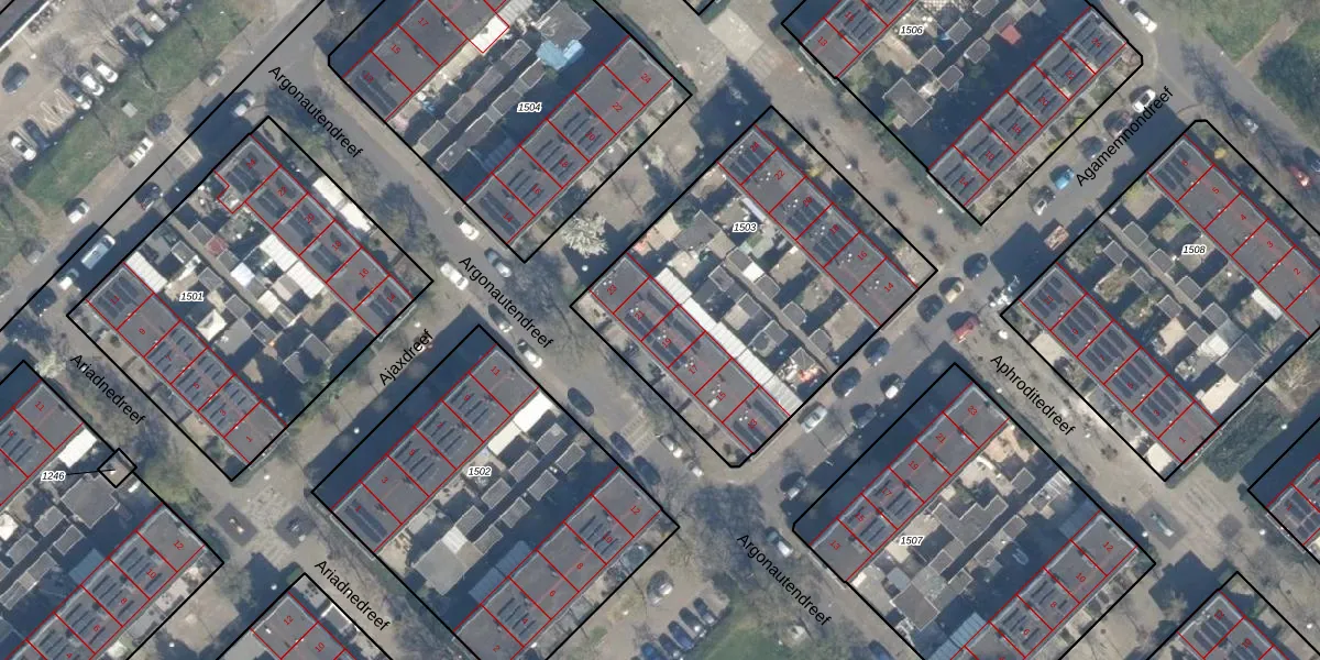 Het perceel waarop Argonautendreef 19 staat heeft een oppervlakte van 1531 m². Dit is een zeer groot perceel. De perceeloppervlakte wordt geregistreerd door het Kadaster. Gedetailleerde informatie over de maten van dit perceel kunt u vinden in het rapport Kadastrale kaart met maatvoering van Argonautendreef 19.