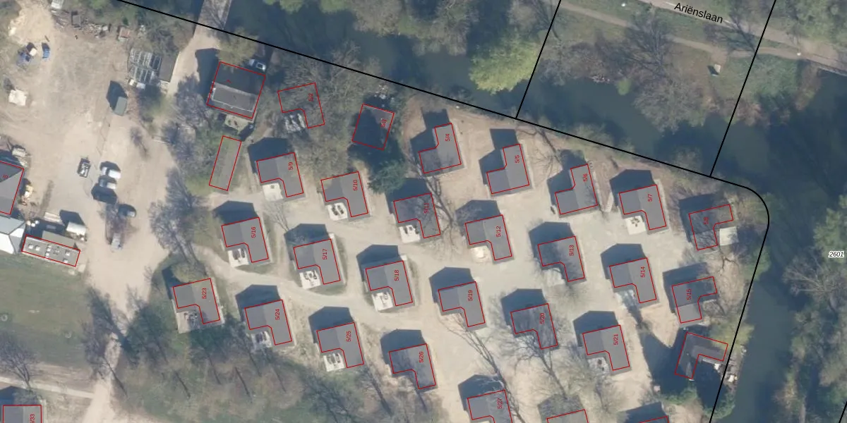 Het perceel waarop Ariënslaan 5-11 staat heeft een oppervlakte van 4,3 ha. Dit is een zeer groot perceel. De perceeloppervlakte wordt geregistreerd door het Kadaster. Gedetailleerde informatie over de maten van dit perceel kunt u vinden in het rapport Kadastrale kaart met maatvoering van Ariënslaan 5-11.