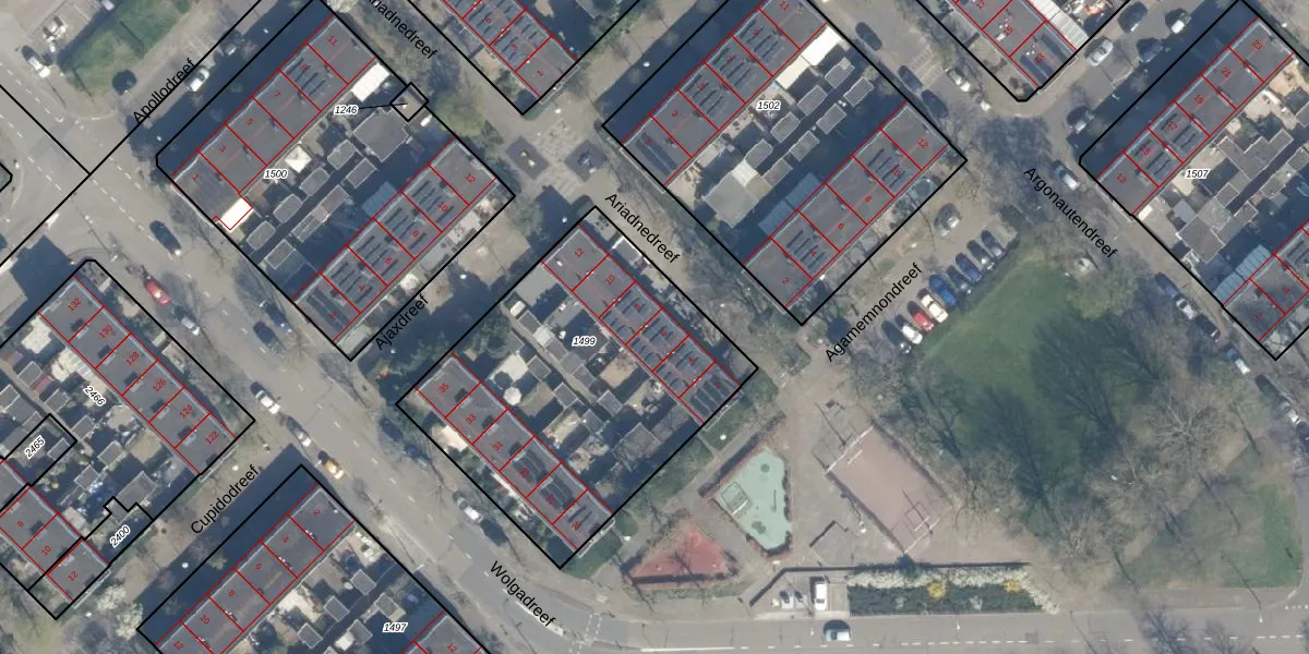 Het perceel waarop Ariadnedreef 6 staat heeft een oppervlakte van 1524 m². Dit is een zeer groot perceel. De perceeloppervlakte wordt geregistreerd door het Kadaster. Gedetailleerde informatie over de maten van dit perceel kunt u vinden in het rapport Kadastrale kaart met maatvoering van Ariadnedreef 6.