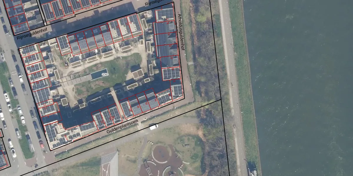 Het perceel waarop Arnoldusguldenhof 49 staat heeft een oppervlakte van 4990 m². Dit is een zeer groot perceel. De perceeloppervlakte wordt geregistreerd door het Kadaster. Gedetailleerde informatie over de maten van dit perceel kunt u vinden in het rapport Kadastrale kaart met maatvoering van Arnoldusguldenhof 49.